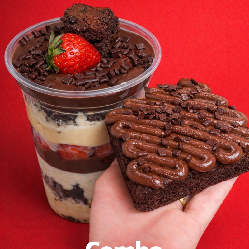 Um copo da felicidade dois amores + um Brownie de chocolate 50%