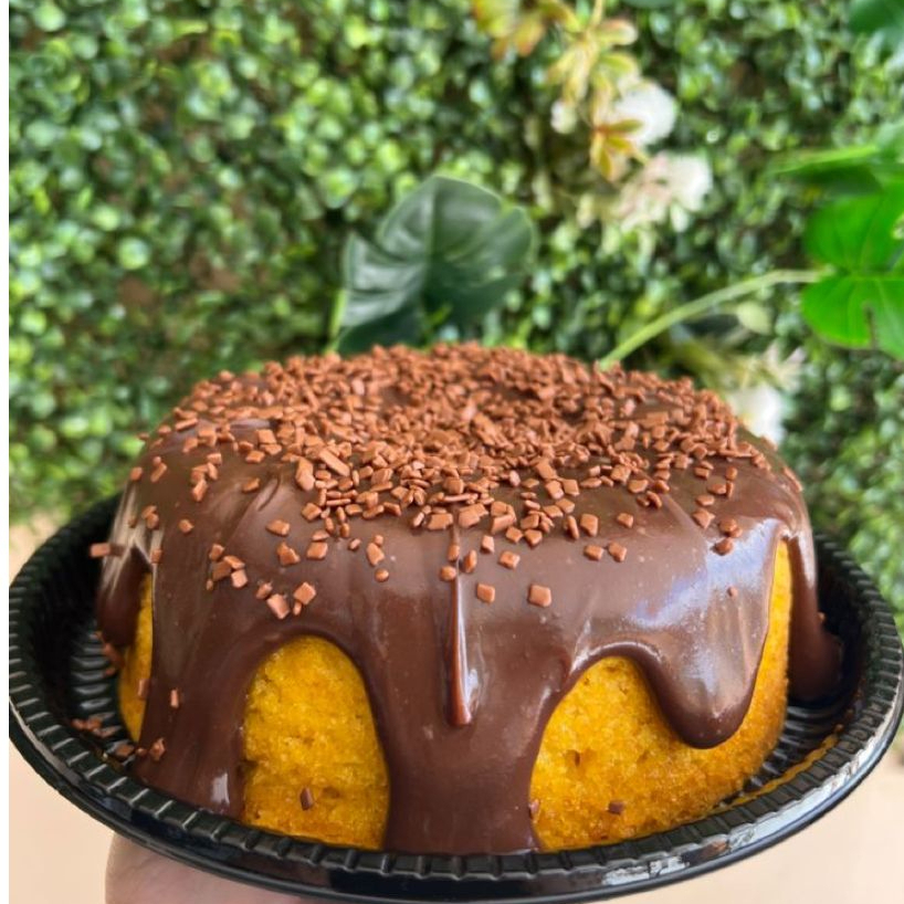 Bolo de cenoura artesanal, bem fofinho com uma deliciosa ganache de chocolate 50%.