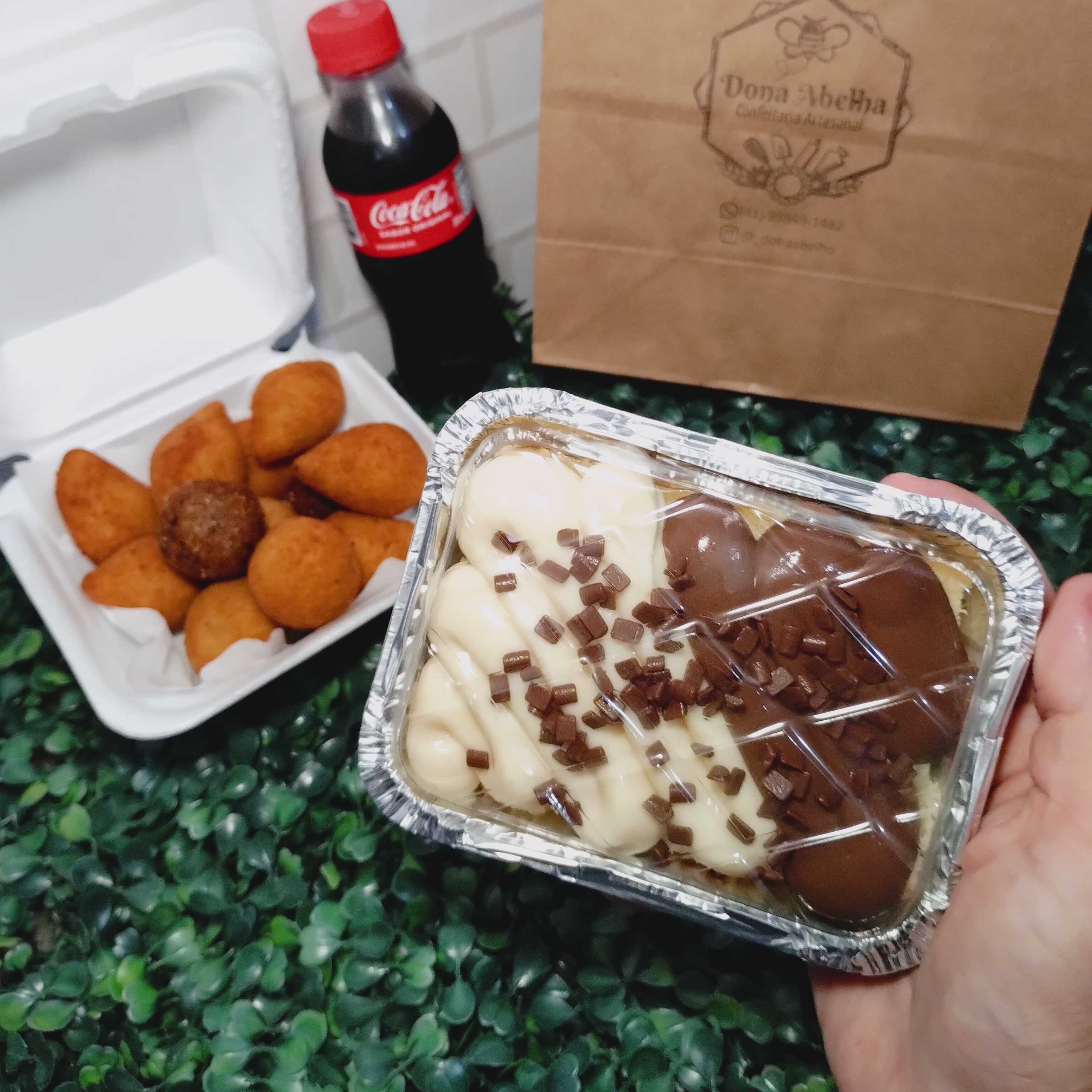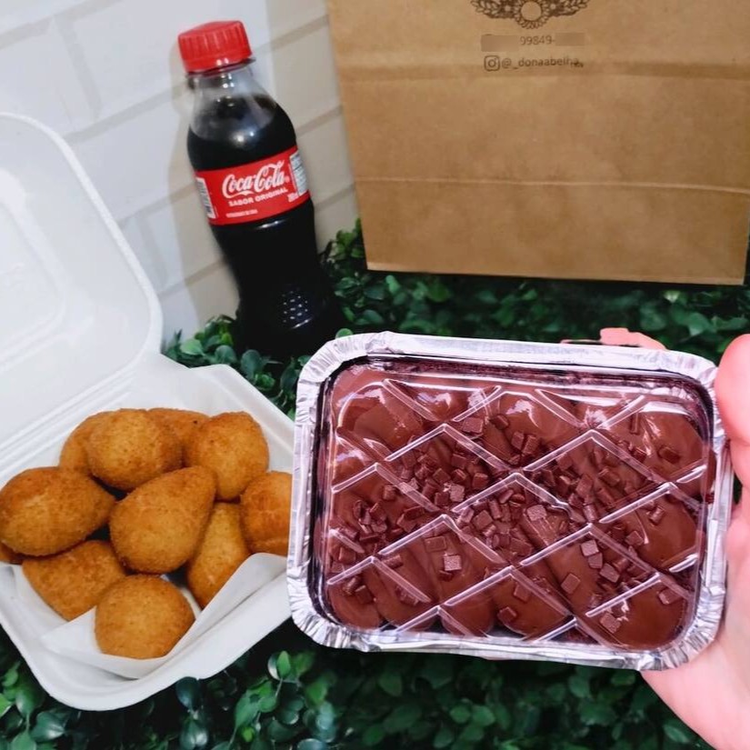 Temos nosso Combo Clássico que vem 1 bolo gelado de Chocolate 50%, 12 salgadinhos sortidos, fritos na hora e 1 coca geladinha - tudo prontinho para você se deliciar