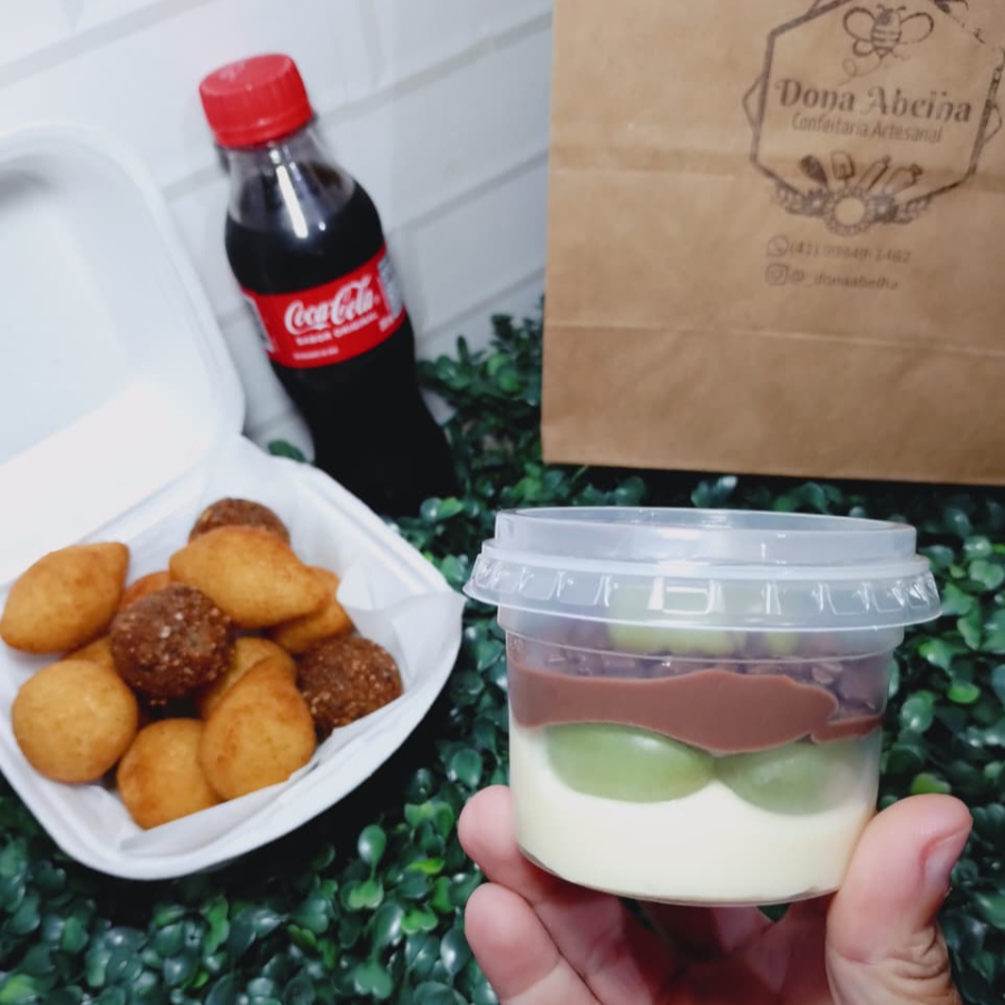 Está buscando algo prático e delicioso?Temos nosso Combo Perfeito que vem 1 brigadeiro de colher (Ninho e choco 50%) e uvas verdes sem sementes, 12 salgadinhos sortidos, fritos na hora e 1 coca geladinha - tudo prontinho para você aproveitar o momento-------------------------tag-----------------------combo festa , kit festa , salgadinhos , bolo , refrigerante , coxinha , risoles , quibe , 2 amores , brigadeiro , lanche , promoção , gratis , barato