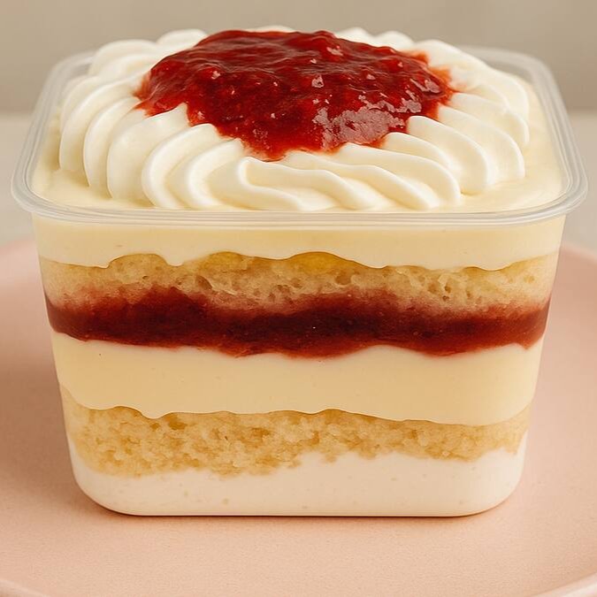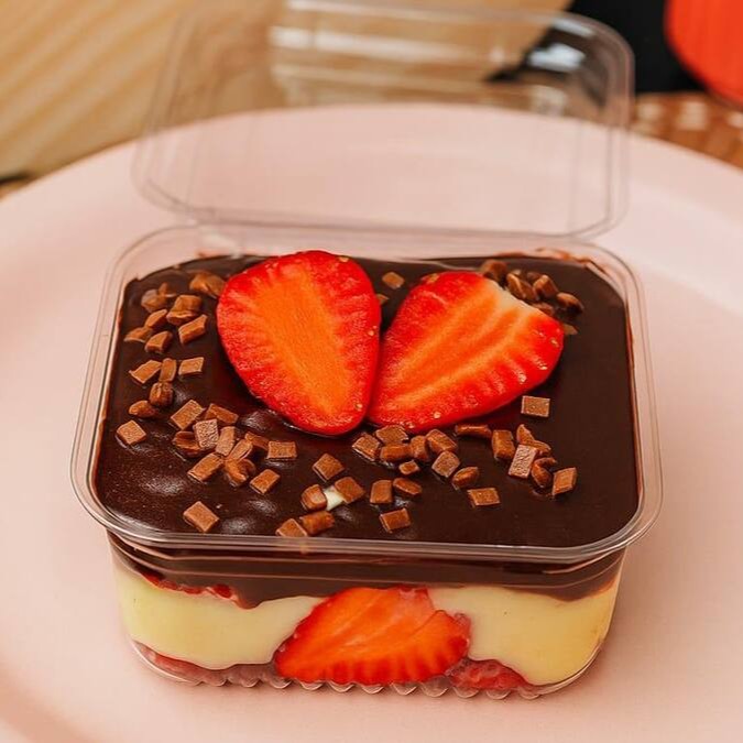 Camadas de bolo branco fofinho com creme suave de leite Ninho e geleia artesanal de morango, levemente azedinha, que equilibra perfeitamente o doce. Uma combinação delicada, refrescante e cheia de sabor! Montado no potinho, é ideal pra quem ama sobremesas cremosas, com um toque frutado e aquele gostinho de feito em casa.