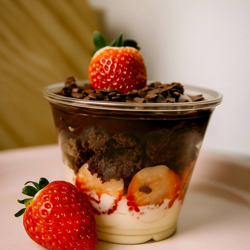 Uma sobremesa clássica em uma versão ainda mais gostosa! Camadas de creme branco super leve, morangos fresquinhos, pedaços de chocolate e cobertura de ganache cremosa. Tudo montado no potinho, com sabor de bombom caseiro feito com carinho. Doce, cremoso, equilibrado e cheio de textura — perfeito pra matar a vontade de um doce especial a qualquer hora!