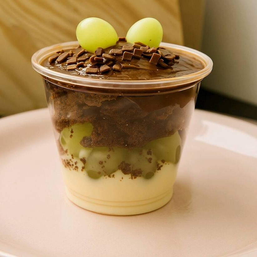 Delicioso copo brownie de Ninho com uva e ganache blend, com camadas de brownie artesanal, creme Ninho super cremoso, uvas frescas e docinhas e ganache de chocolate blend (meio amargo e ao leite). Uma combinação perfeita entre o sabor intenso do chocolate e a leve acidez da uva doce, equilibrado e irresistível!