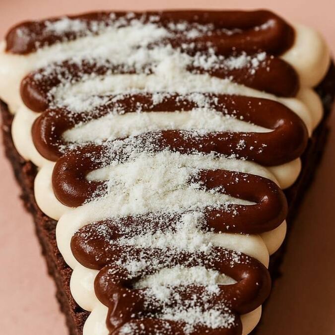 Brownie denso e macio como base, coberto com creme de avelã cremoso, pedaços de Ferrero Rocher e um toque de chocolate ao leite derretido por cima. A crocância da avelã com o recheio suave do bombom cria uma explosão de sabores a cada mordida. É luxo, intensidade e muito chocolate em cada fatia! Ideal para momentos especiais — ou quando bate aquela vontade de se mimar com algo realmente incrível.
