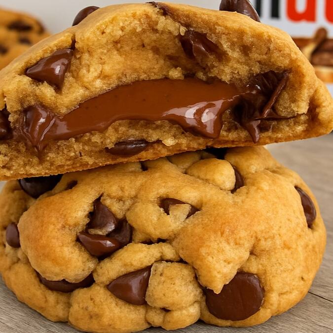 Cookie grande, macio por dentro e levemente crocante por fora, recheado com um creme de avelã cremoso que escorre a cada mordida. Massa amanteigada, pedacinhos de chocolate e um recheio marcante que derrete na boca. É o tipo de cookie que conquista no primeiro pedaço e faz você querer mais um!