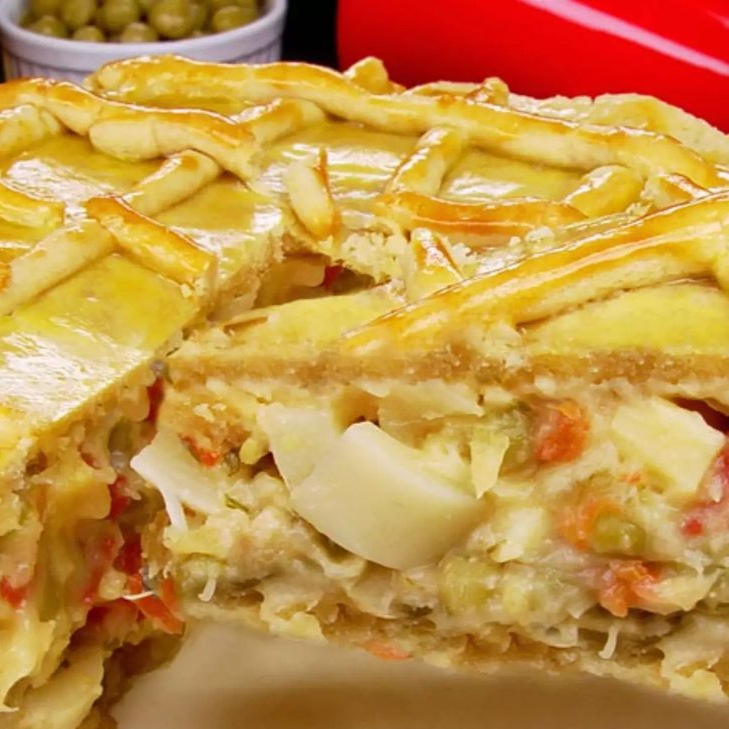 empadão de frango, empadão cream cheese, empadão caseiro, massa crocante, frango desfiado, empadão 250g, comida caseira, salgado assado, comfort food, refeição prática.