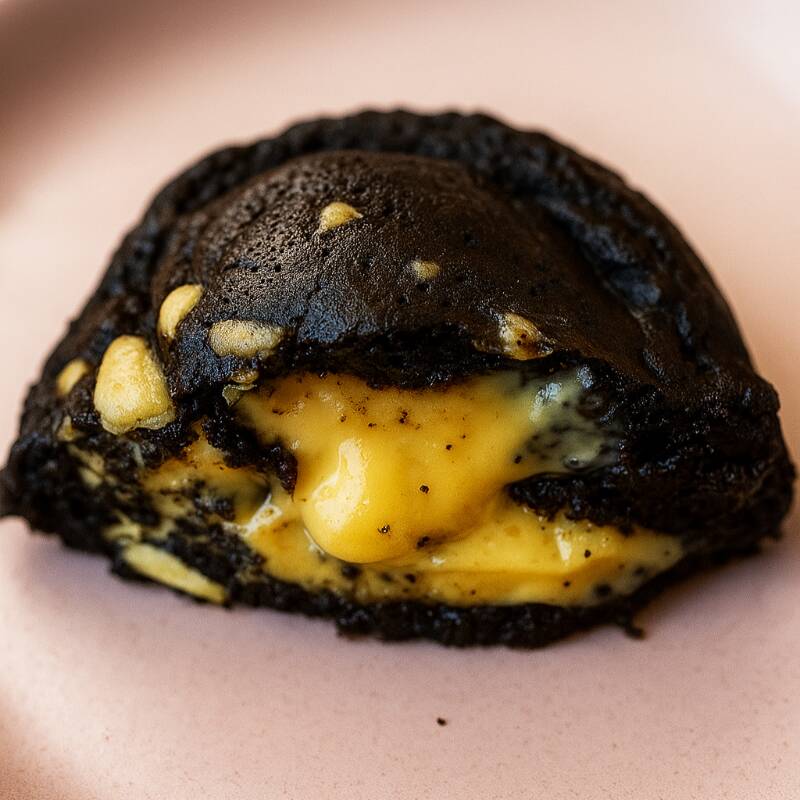 Uma combinação irresistível de brownie com cookie: por fora, a crocância e o sabor intenso do cookie de chocolate; por dentro, um recheio cremoso de creme de avela, que derrete a cada mordida. Textura macia, sabor marcante e aquele equilíbrio perfeito entre o chocolate intenso e a suavidade da avelã. Ideal para quem ama sobremesas bem recheadas e extremamente indulgentes.