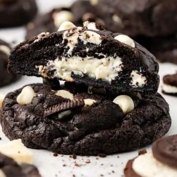 cookie recheado, cookie [sabor], creme [sabor], cookie amanteigado, cookie com chocolate, crocante por fora, macio por dentro, cookie grande, artesanal, sobremesa cremosa, doce caseiro, comfort food, irresistível