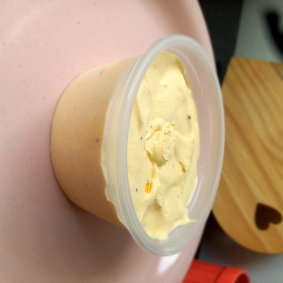 Gelato Italiano e feito com iogurte, leite em po, creme de leite, leite, polpa de maracuja, reducao de maracuja e acucar