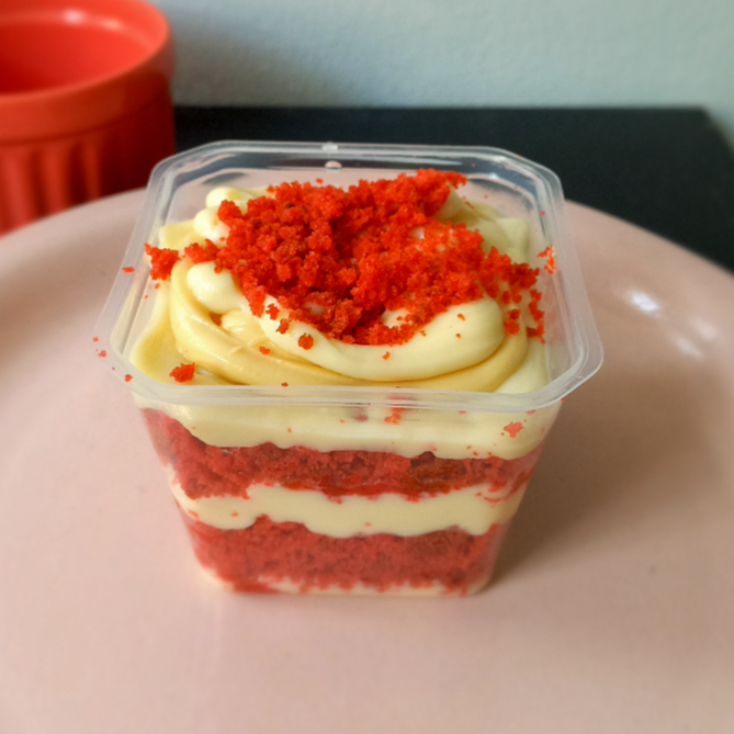 massa macia e aveludada, camadas generosas de bolo red velvet vermelho intenso, intercaladas com creme 4 leites super cremoso, sabor equilibrado, doce na medida certa, textura úmida e irresistível, sobremesa sofisticada e perfeita para qualquer ocasião. Palavras-chave: bolo no pote red velvet, red velvet 4 leites, bolo no pote gourmet, sobremesa no pote, creme 4 leites, bolo molhadinho, massa aveludada, sobremesa cremosa, doce gourmet, bolo artesanal, sobremesa premium, bolo vermelho