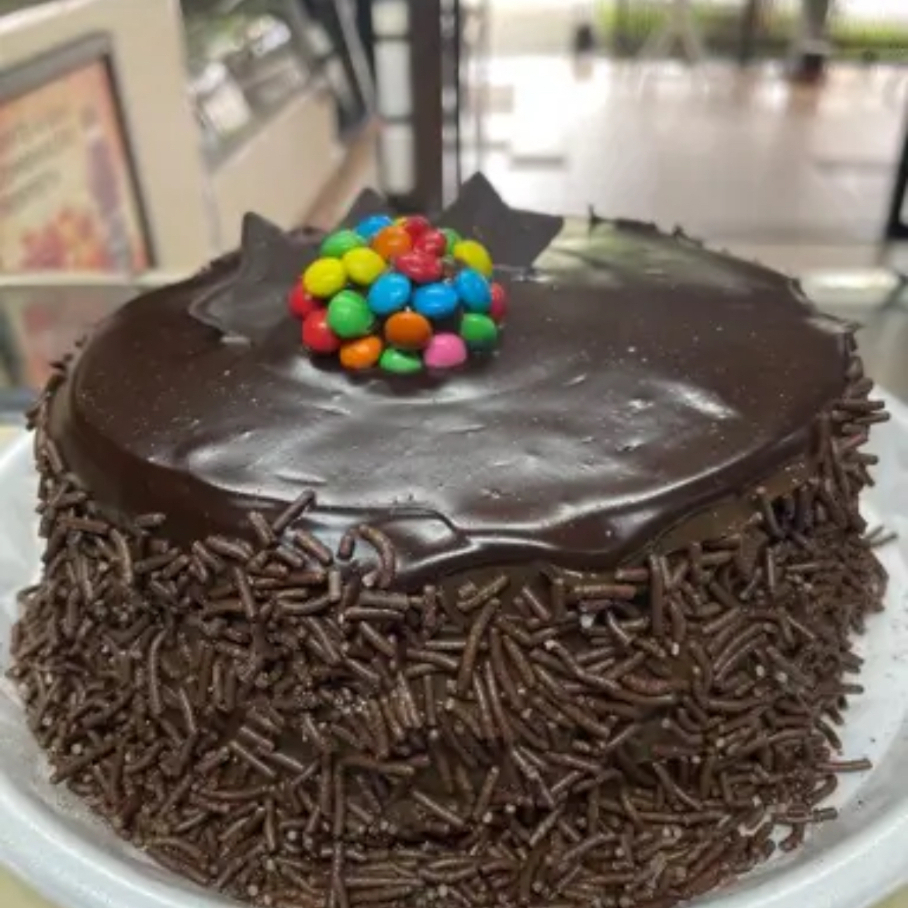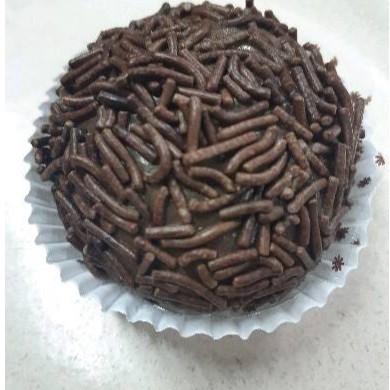 Bolo caseiro de chocolate, bem molhadinho e recheado e coberto com brigadeiro preto. Peso aproximado: 900g.