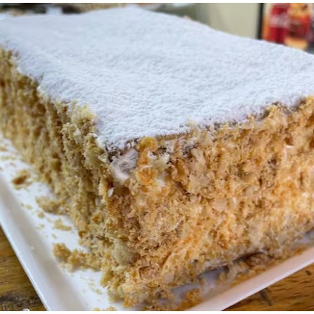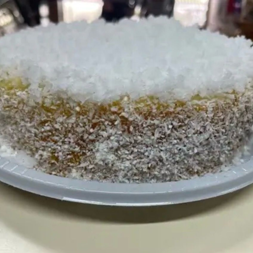 Bolo caseiro de massa bem úmida com sabor de côco, coberto com côco ralado. Peso aproximado: 500g.