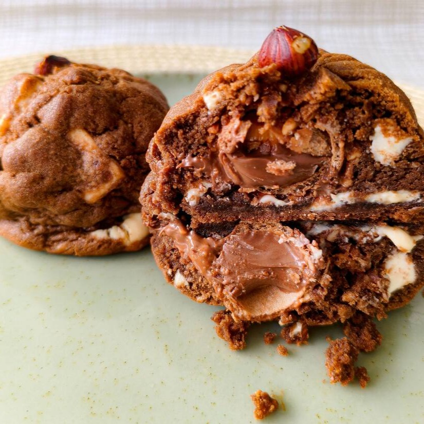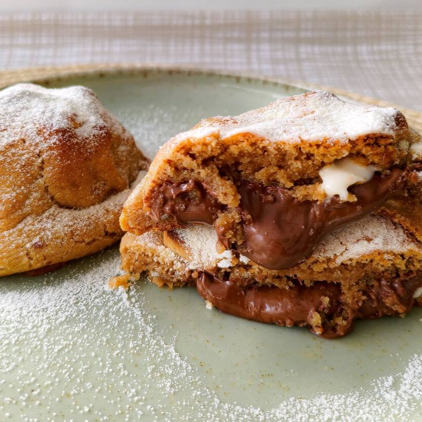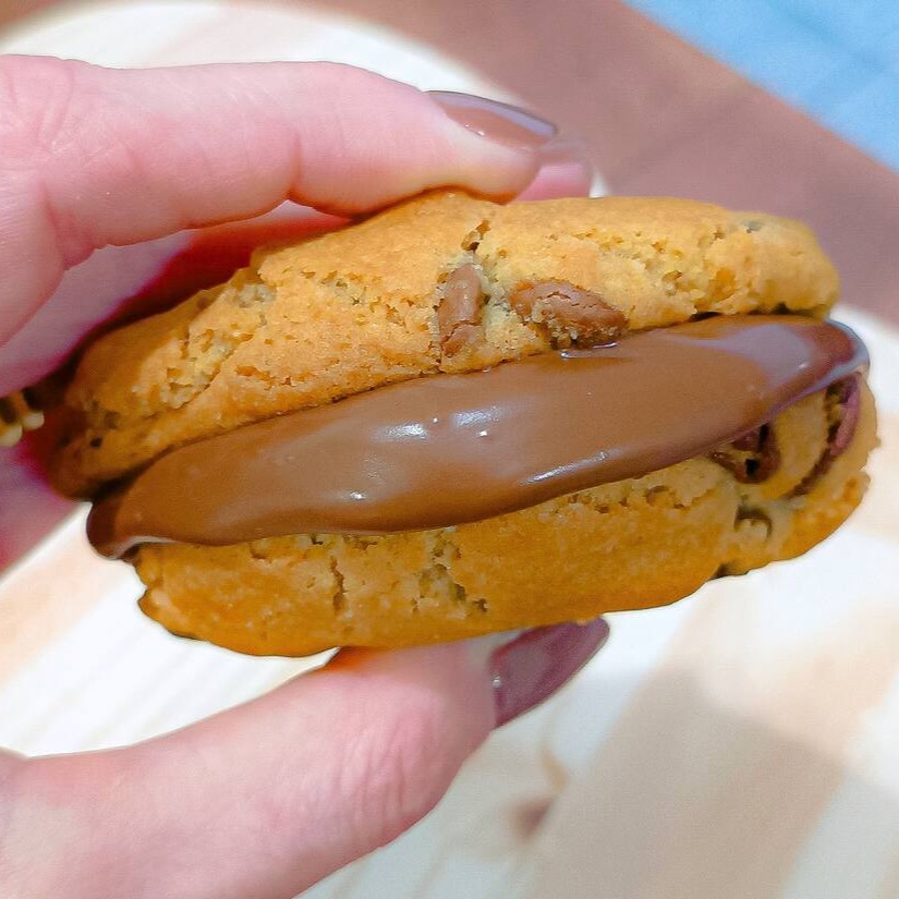 Delicie-se com dois cookies macios e crocantes, recheados com sua escolha de Nutella cremosa ou Doce de leite suave. Perfeito para dividir ou saborear sozinho!
