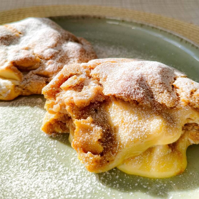 Massa amanteigada com leite Ninho e gotas de chocolate branco e muito recheio delicioso de Nutella.