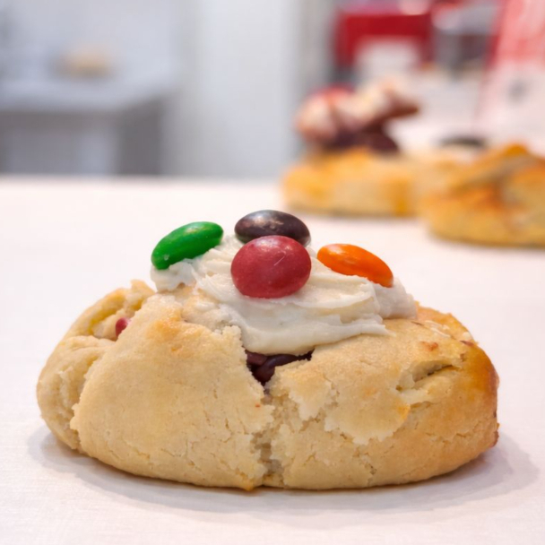 Colorido, divertido e irresistível! Nosso cookie é feito com massa amanteigada, macia por dentro e levemente crocante nas bordas, recheado com generosos pedaços de M&M’s que derretem na boca. Cada mordida é uma explosão de sabor e cor, perfeita para quem quer um doce divertido, delicioso e cheio de alegria.