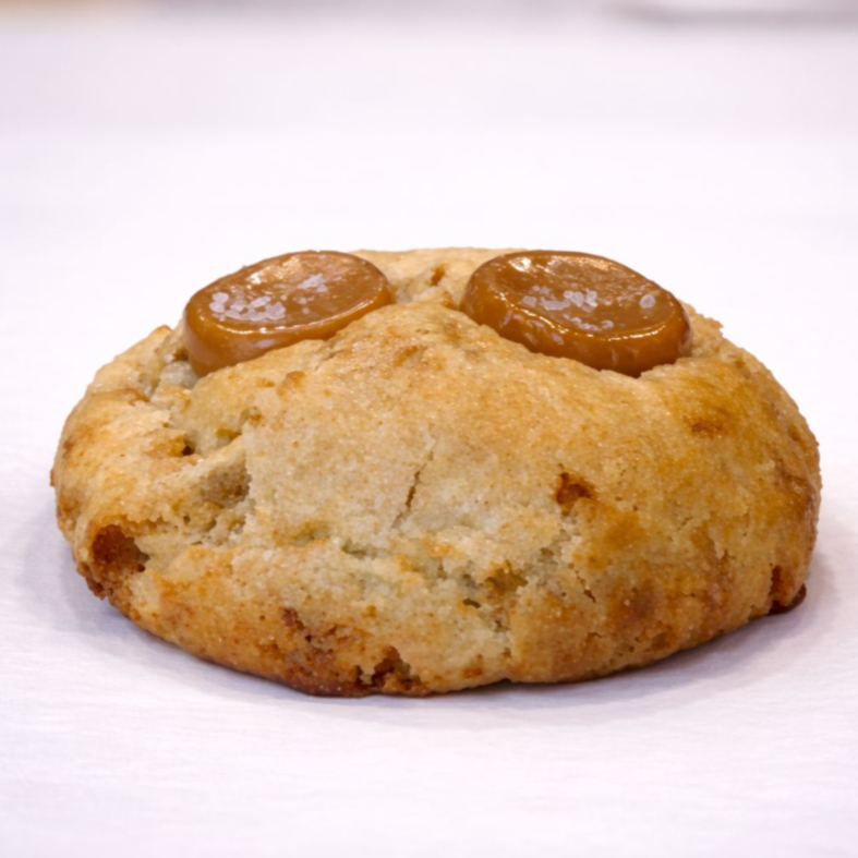 Irresistível por fora, surpreendente por dentro! Nosso cookie de caramelo salgado é macio no centro, levemente crocante nas bordas e recheado com um generoso núcleo de caramelo cremoso com toque de flor de sal.