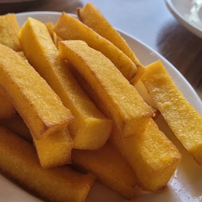 Polenta frita crocante dourada.