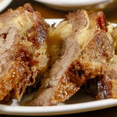 Este prato é uma deliciosa refeição que serve em média 3 pessoas,acompanha 4 fatias de costela pesando aproximadamente 1kg também acompanha ,arroz ,maionese, polenta frita,e uma salada mista