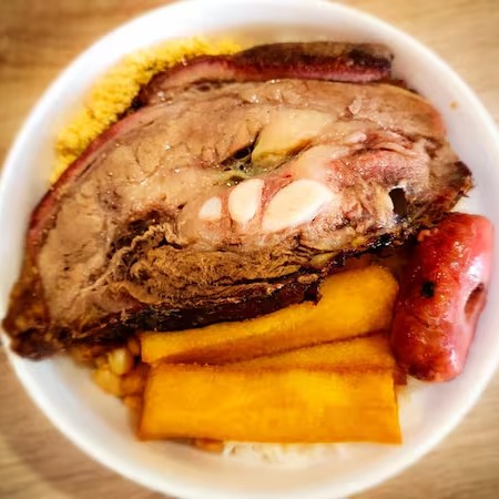 Delicie-se com a nossa 'Marmita com Costela', uma refeição individual de categoria 'Marmitas', concebida para agradar até aos paladares mais exigentes. Apresentamos uma generosa fatia de costela, cuidadosamente assada para alcançar uma textura suculenta e um sabor inconfundível. Acompanha, ainda, um arroz fresco e soltinho, feijão carioca cozido à perfeição, uma farofa crocante e saborosa e uma linguiça defumada de dar água na boca. É a combinação perfeita para uma refeição completa e satisfatória. E ainda se desejar favor solicitar salada verde ou maionese de acompanhamento