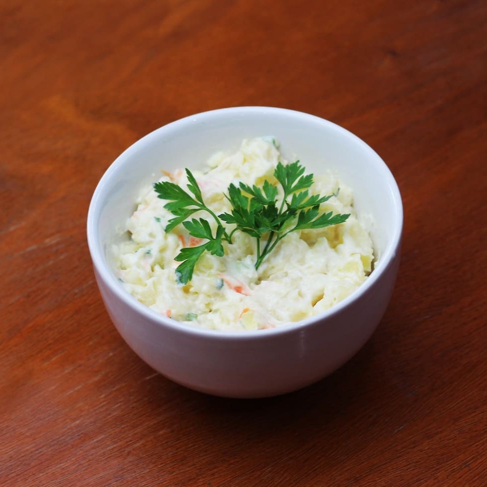2 filés(350g cada), 300 gramas de maionese, 300 gramas de polenta frita, 300 gramas de aipim frito, 300 gramas de arroz e uma salada mista pequena