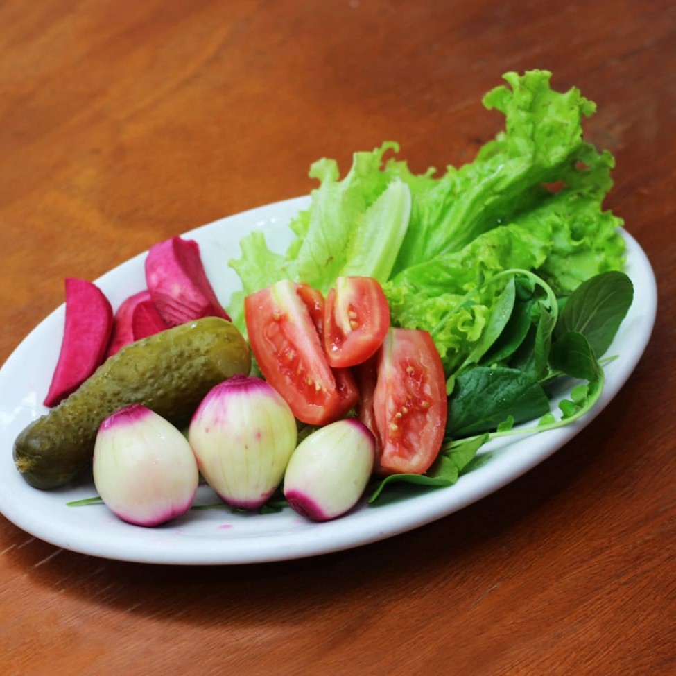 300 gramas em um misto de rabanete, pepino e cebola em conserva.