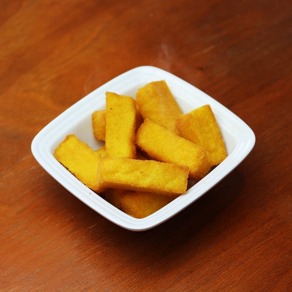 Porção de Polenta Frita; Opções de tamanho 200 g, 500 g e 800 g.