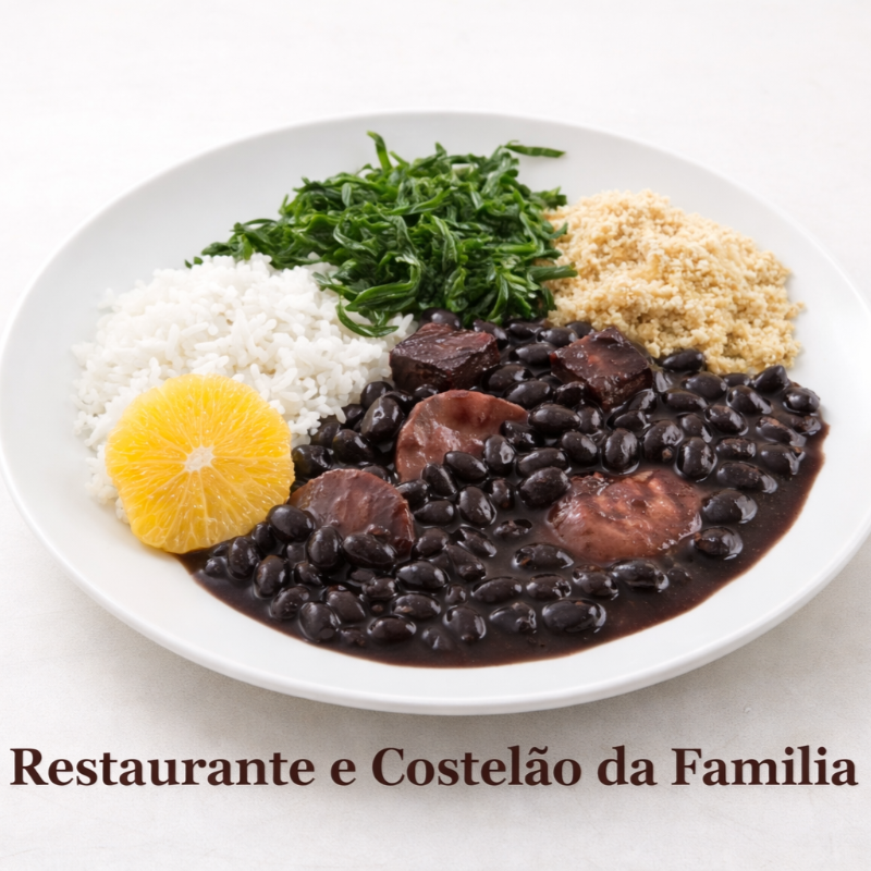 ACOMPANHA: FEIJOADA,ARROZ,FARÓFA,COUVE,TORRESMO LARANJA E VINAGRETE.