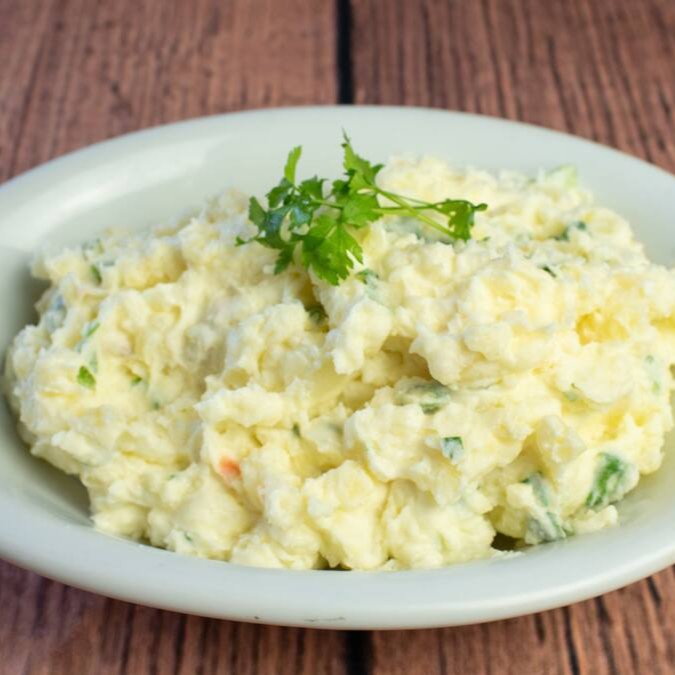 Arroz, feijão, farofa, legumes, nhoque, polenta e aipim frito. maionese (100g)