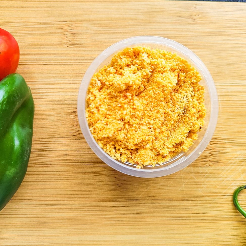 Farofa crocante feita com farinha de mandioca: a textura irresistível que transforma qualquer refeição em uma experiência deliciosa e cheia de sabor. Embalagem: Pote de 140ml