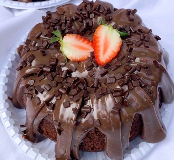 Bolo de piscina de cenoura com cobertura de brigadeiro Cremoso,peso 600gr serve 4 pessoas