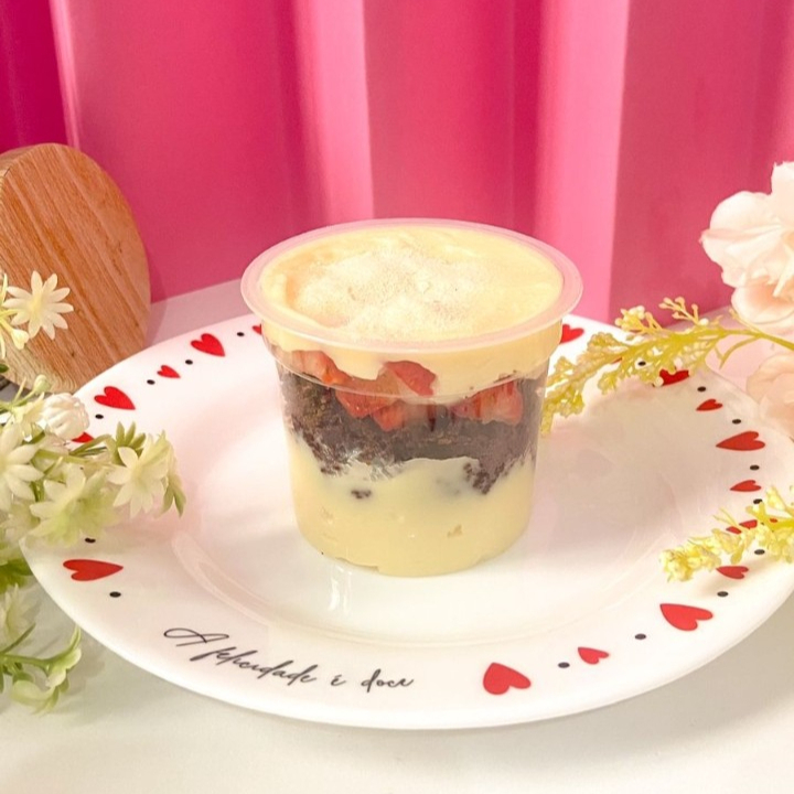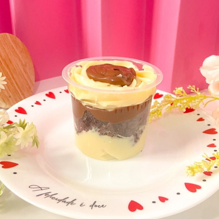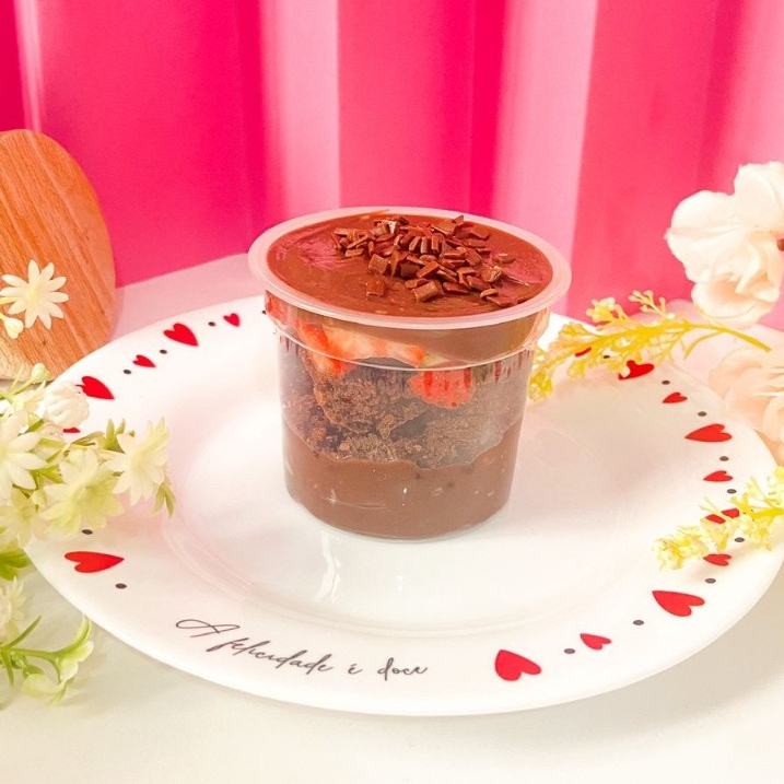 delicioso afogadinho no pote 145 ml ,contem creme de ninho ,pedaços de brownie e nutella pura uma combinação perfeita.