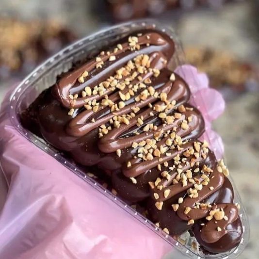 Deleciosa massa de chocolate bem molhadinha com recheio de brigadeiro cremoso 250gr