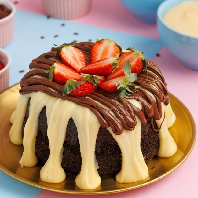 Bolo Vulcão De Ninho Com Nutella E Morangos