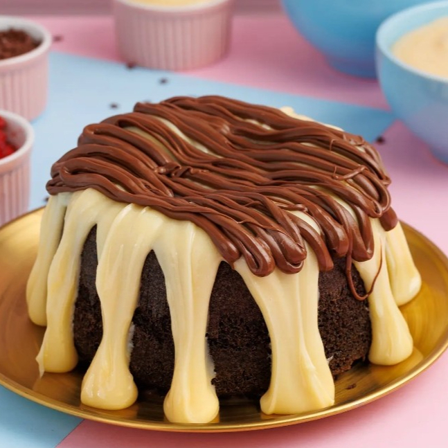 DELICIOSA MASSA DE CHOCOLATE COM COBERTURA DE BRIGADEIRO CREMOSO,PESO APROXIMADO 800GR SERVE 4 PESSOAS