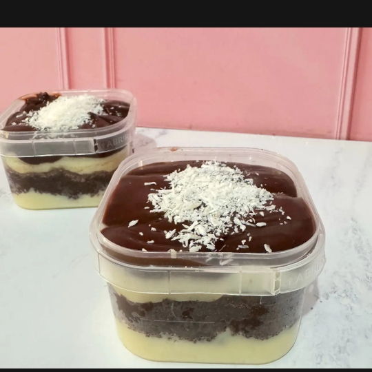 Deliciosa massa de chocolate bem molhadinha com recheio cremoso de coco e de chocolate ,peso 250gr