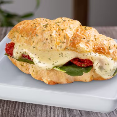 Croissant tamanho Médio recheado com tomate seco, queijo muçarela, rúcula e orégano