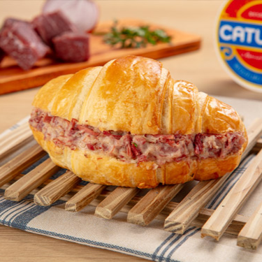 Escolha o tamanho do Croissant (pequeno ou médio), recheado com Carne Seca e com Catupriy Original. (Os ingredientes não podem ser alterados e/ou retirados.)