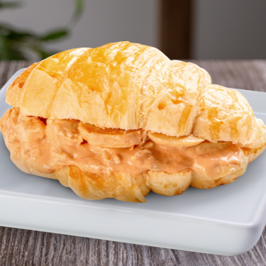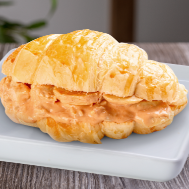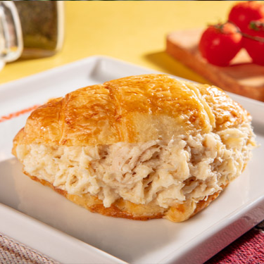 Croissant tamanho Médio recheado com peito de frango desfiado, molho de tomate e queijo cremoso