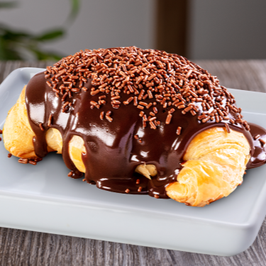 Croissant de tamanho do Croissant Pequeno, recheado com brigadeiro de panela coberto com chocolate granulado