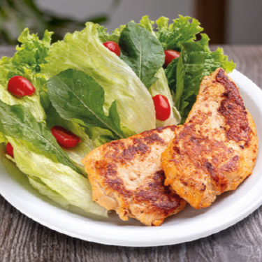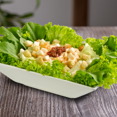 Mix de folhas verdes, peito de frango em cubos, cream cheese, palmito, croutons e um toque de tomate seco