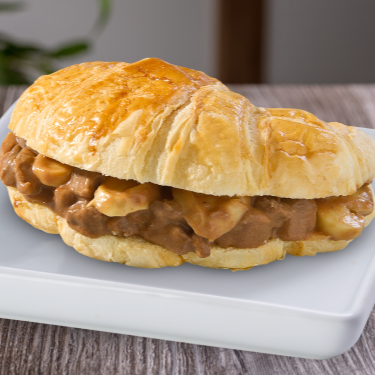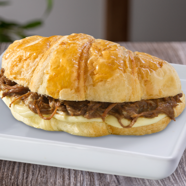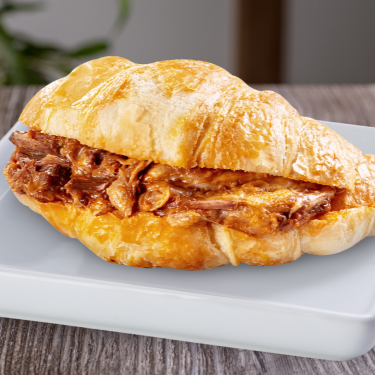 Croissant tamanho Médio, recheado com carne suína desfiada com delicioso Molho Barbecue Hellmann’s