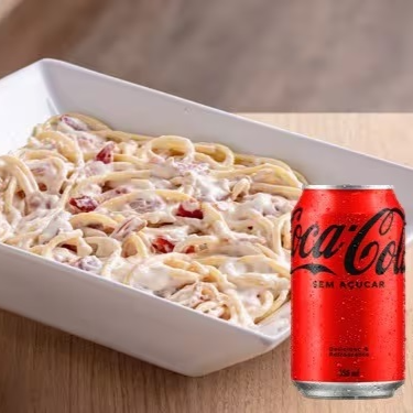 Spaghetti grano duro, creme de leite, parmesão e bacon + 1 Coca-Cola Lata Grátis
