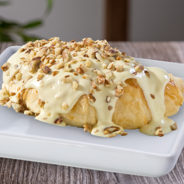 Escolha o tamanho do Croissant (pequeno ou médio), recheado com Chocolate branco Nestlé coberto com nozes