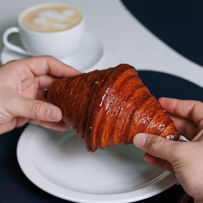 Inspirado numa receita do século Xvi, esse croissant carrega a sofisticação da técnica frangipane: uma pasta de amêndoas cremosa e aveludada, envolta por uma crosta crocante e tostada.