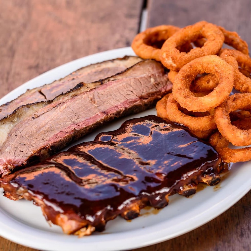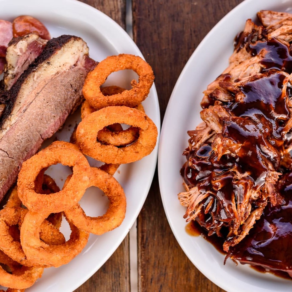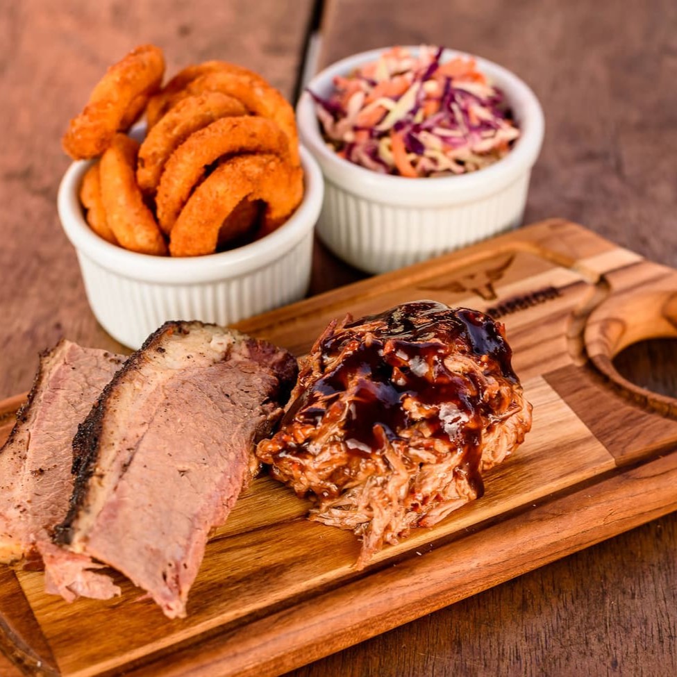 Para quem gosta de carne e variedade, este é um delicioso mix com 300g costelinha barbecue, 300g de pulled pork e 300g de brisket. Acompanha 1 porção G de onion rings, french fries ou fried okra.