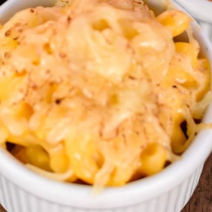Porção grande de nossa deliciosa versão do famoso macarrão com queijo americano