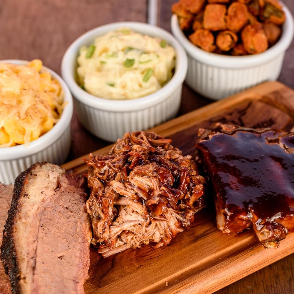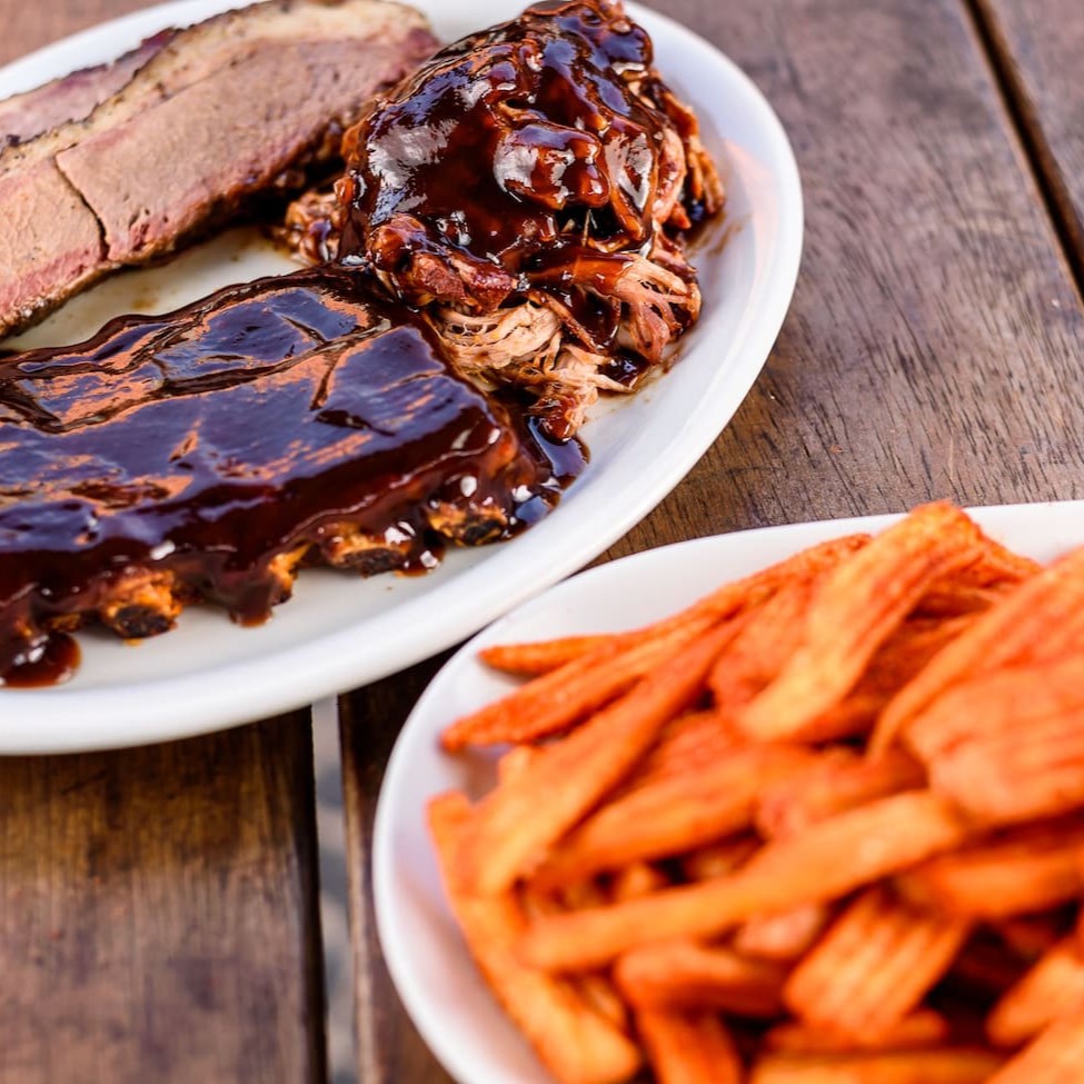 Delicioso mix de 400g de costelinha barbecue,300g de brisket,300g de smoked sausage,300g de pulled pork, acompanha fritas.