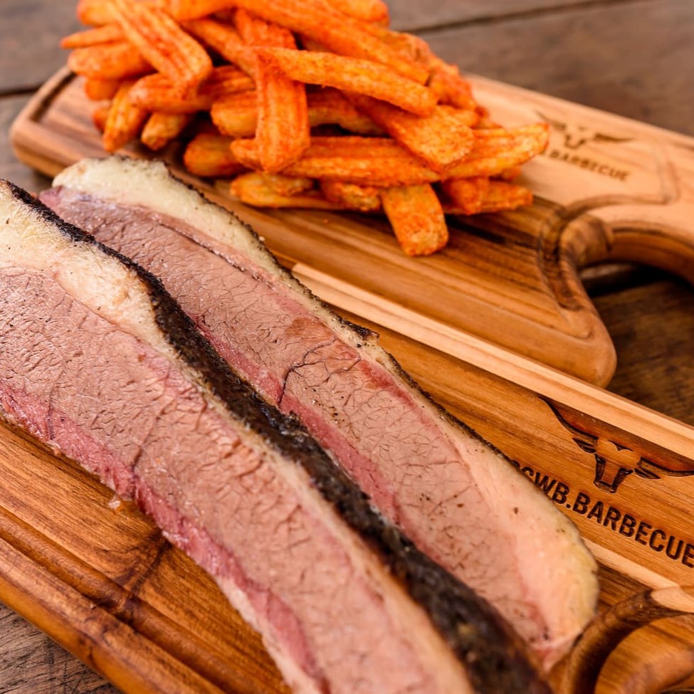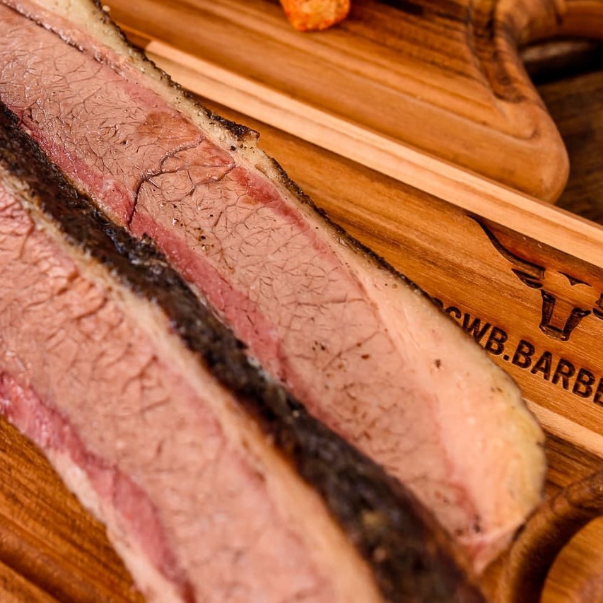 Estrela do churrasco texano,é um corte especial do peito bovino assado e defumado lentamente por 12 horas que lhe confere sabor e maciez incomparável. São 600 gramas de carne levemente picante e uma porção G de acompanhamento