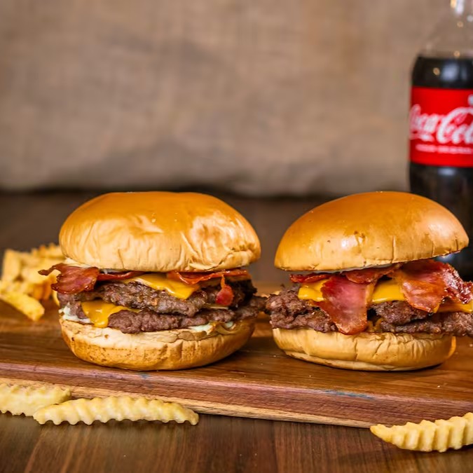 Inclui 2 Smash Bacon 2.0: pão brioche, maionese cremosa, dois hambúrgueres smash de 90g cada (in natura), queijo cheddar e bacon fatiado. Acompanha 2 porções de batata frita e um Refrigerante 600ml grátis. Tudo isso em um combo perfeito para compartilhar e curtir muito sabor!