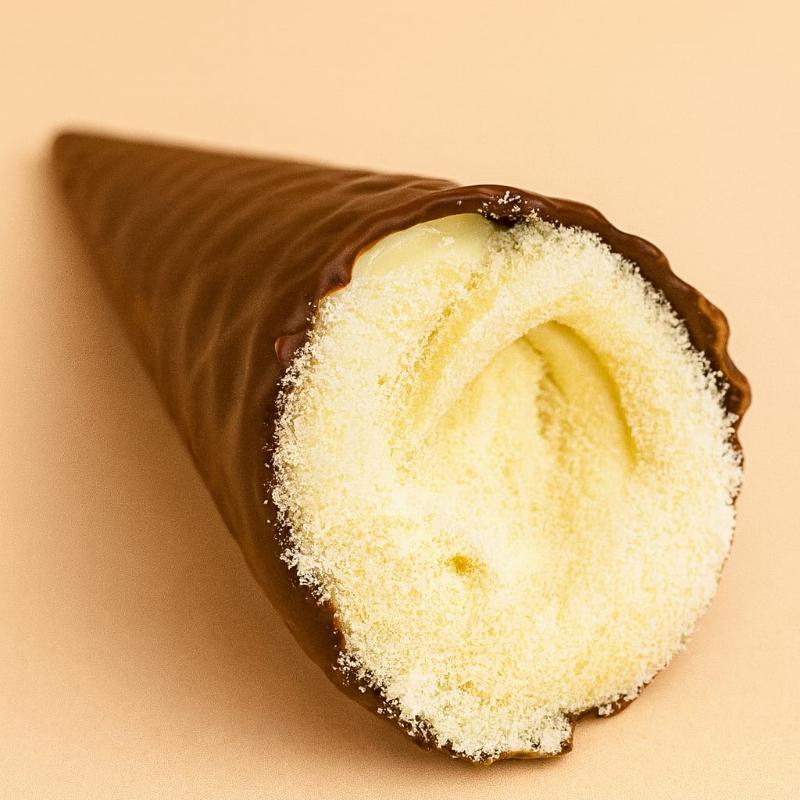 Cascão banhado em chocolate recheado com brigadeiro belga branco e pedaços de brownie